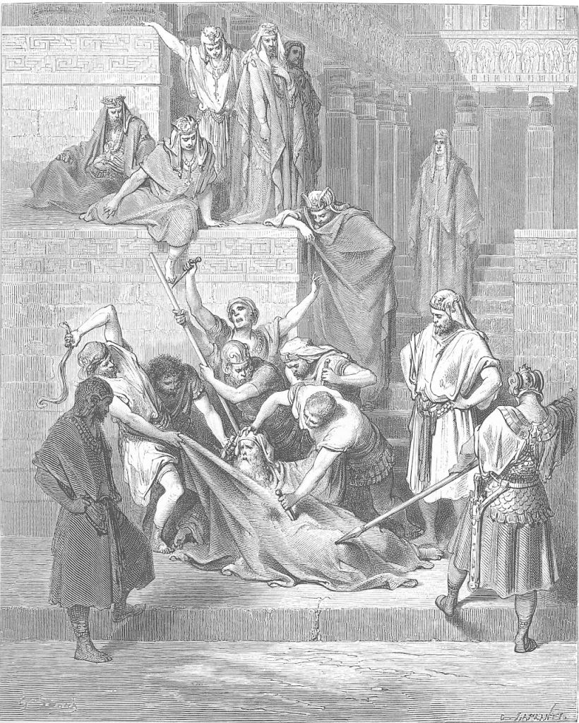 7 And in the day of the king’s birth every month they were brought by bitter constraint to eat of the sacrifices; and when the fast of Bacchus was kept, the Jews were compelled to go in procession to Bacchus, carrying ivy.